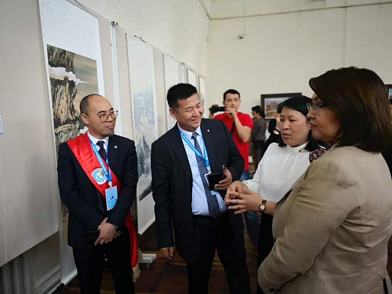 此次展览是为进一步烘托 2019 上合组织比什凯克峰会氛围,推动上合组织框架内人文合作、促进民心相通,由吉尔吉斯共和国政府与北京和平之旅文化交流中心共同主办,主要展示了来自25个国家的艺术家作品近一百余幅,中国共有15位画家参与此次展览,公司best365足球官网魏意苹老师携近年创作的《水色清心》、《净湖山色》等六幅中国画作品参加了此次展览。6月14日,展览在吉尔吉斯斯坦国家艺术博物馆隆重开幕,吉尔吉斯斯坦副总理奥穆尔别科娃、吉尔吉斯斯坦总统办公厅文化顾问苏丹.拉耶夫、北京和平之旅文化交流中心理事长邵常淳等人士参加了此次展览并致辞,吉尔吉斯斯坦总统索隆拜.沙里波维奇.热恩别科夫先生亲自为展览画册撰写了前言,整个展览吸引了众多观众并获得了很高的艺术评价。