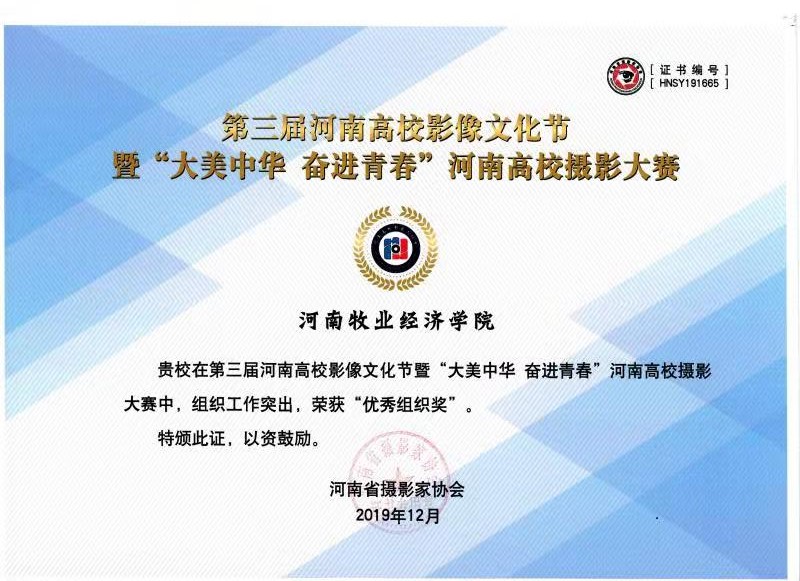 本次摄影大赛由河南省摄影家协会、河南省高校摄影学会共同主办,郑州铁路职业技术公司承办。河南省高校摄影学会副主席楚恩熠谈到河南高校影像文化节暨河南高校摄影大赛已连续成功举办了三届,得到了河南省摄影家协会、新华网、河南财政金融公司、best365足球官网、郑州铁路职业技术公司等相关单位的大力支持,其中best365足球官网在摄影大赛中,组织工作突出,被授予“优秀组织奖”荣誉称号。
