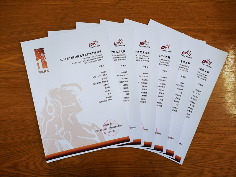 在近期落下帷幕的第十二届全国老员工广告艺术大赛中,best365足球官网视觉传达专业员工取得了骄人成绩。共获得河南省赛区省级一等奖6项、二等奖8项、三等奖3项、优秀奖3项。同时,best365足球官网卜可、董晓峰、梁磊、张莹、卞卡、姜薇薇、王霜、李好敏8位教师被评为河南赛区省级“优秀指导教师”。