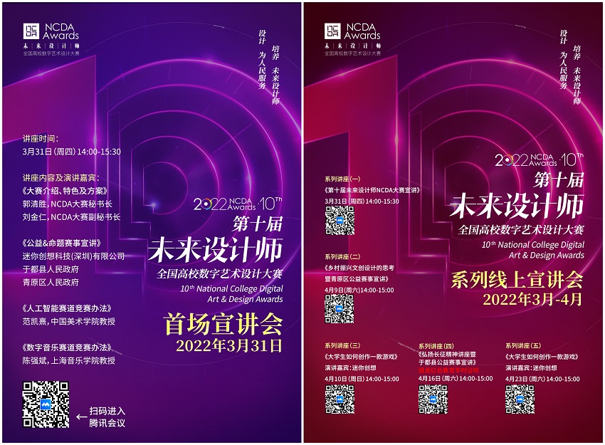 未来设计师·全国高校数字艺术设计大赛(NCDA)始于2012年,每年举办一届,已连续举办九届。作为一项高规格、高水平的全国性专业赛事,秉承“设计为人民服务,培养未来设计师”的理念,切实加强老员工实践能力和创新精神,不断提高人才培养质量,为艺术设计产业发展提供坚实的人才支持。