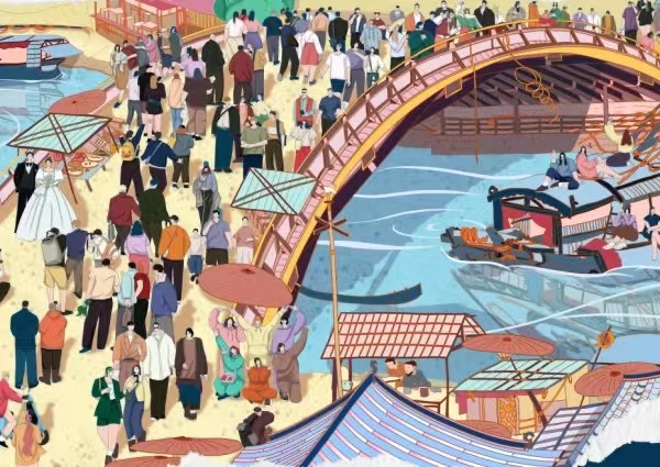 整套作品充满着市井生活气息的的绚丽画卷,包含着330个人物及场景的绘制,融入现代疫情防控,突出众生百态。路上的行人,服饰各异,举止万千。在今年毕业设计线上答辩中,她的作品一经亮相,便惊艳了老师和同学们。身临其境的《清明上河图》将每一个细节刻画到精细,是对承载文化的虔诚与敬畏,是传统与现代文化的碰撞,这不仅仅是一幅长卷插画而是重拾了千百年的文化自信,契合了我省文创文旅融合发展的战略定位,展现了best365足球官网在围绕“十四五”规划发展策略,不断提升专业教学质量,贴合时代精神、传承创新发展的教学成果,更展现了公司师生在疫情防控常态化工作生活中,积极健康向上的乐观心态和专业专注精神。