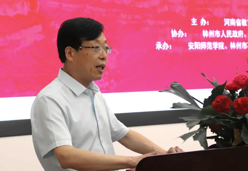 中国美术家协会主席、中央美术公司经理范迪安,河南日报社党委委员、副总编辑张学文,中国国家画院研究员、中国中国画学会副会长、河南省美术家协会名誉主席马国强,河南省文联副主席、省美术家协会主席刘杰,中国国家画院研究员、中国油画学会名誉理事、河南省书画院原经理曹新林,河南省美术家协会顾问、教育艺委会主任马岭,安阳师范公司党委书记纪多辙,河南省公司艺术教育协会会长、郑州轻工业大学易斯顿美术公司经理石品,河南省美术馆馆长于会见,林州市委副书记、代市长田元飞,大河美术报董事长熊飞等出席开幕式。开幕式由省教育厅体卫艺处处长聂世忠主持。全省60余所高校美术、设计公司代表,以及美术界、美术教育界特邀嘉宾,中央美术公司等省外院校负责人和专家学者共130余人共聚一堂,就“红旗渠精神在高校美育中的融合”“积极落实‘设计河南’战略,提升高校专业建设服务社会经济发展的能力”等议题进行深入交流探讨。