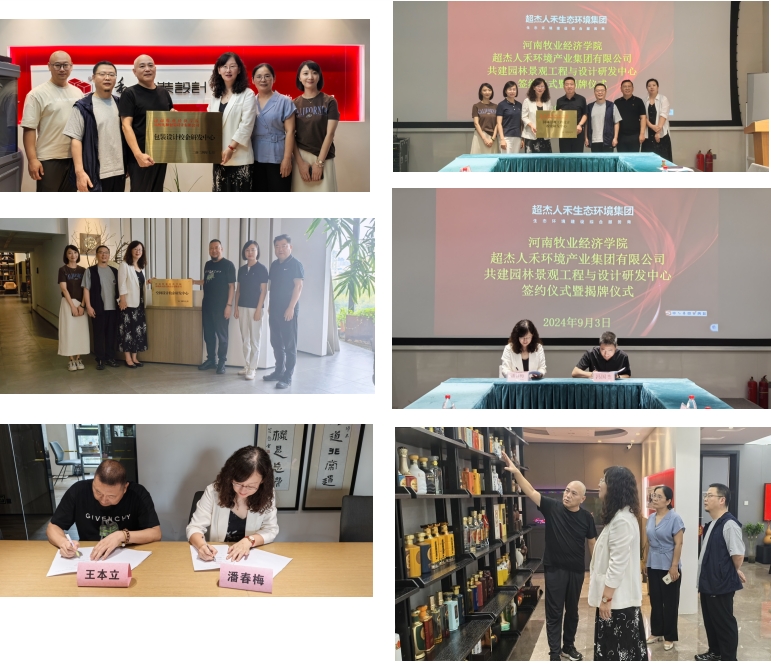 9月3日,公司科学技术处处长潘春梅、公司党委书记杨莉、经理张鹏等一行六人前往超杰人和环境产业集团有限公司、河南西元绘空间设计有限公司、郑州九和包装设计有限公司等三家企业,举行“校企研发中心”揭牌仪式,与三家企业开展座谈,就下一步空间设计、园林景观工程与设计、包装设计等校企研发深度合作达成共识。
