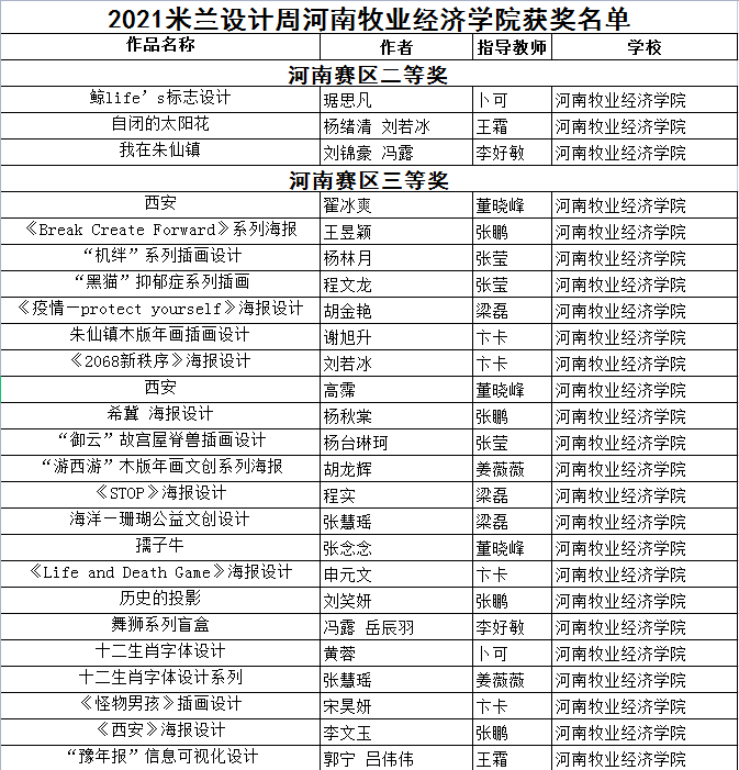 在近期落下帷幕的2020米兰设计周—中国高校设计学科师生优秀作品展中,best365足球官网视觉传达专业师生取得了骄人成绩,共获得河南省赛区省级一等奖1项、二等奖7项、三等奖22项。