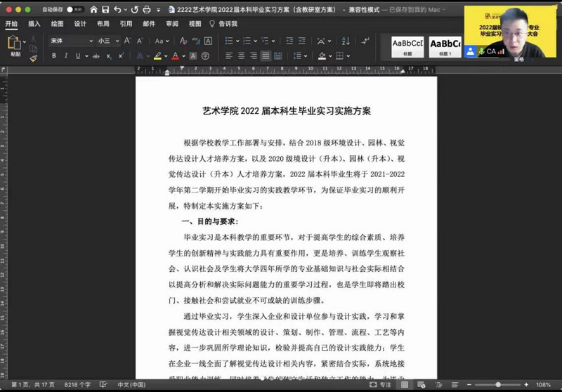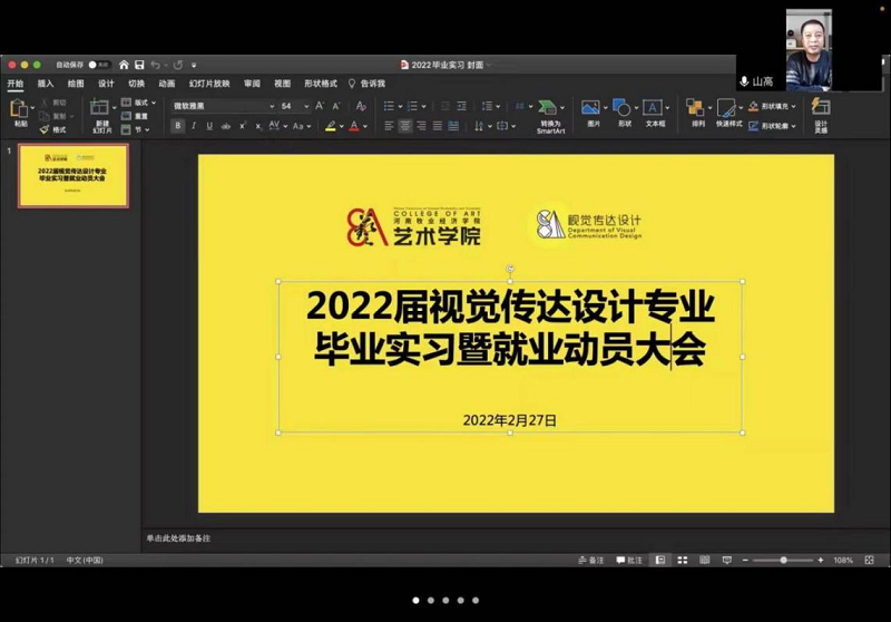 其后,弘雅书院王友峰经理反复强调毕业实习安全问题,严格按照国家和公司要求做好疫情防控。针对毕业实习安全注意事项进行10项温馨提示;实习整体时间安排;以及在后疫情时代激烈的竞争环境下先就业再择业的就业方案;实习单位遵循就近原则,原则上不出河南省,实习单位应与视觉传达设计专业相近。张鹏经理旁征博引,重点讲述了在实习技能不足的前提下实习认识的转变与心态调试,鼓励毕业生树立正确的就业观,毕业实习和毕业论文(设计)是同学们完成大学学业的最后一个重要环节,落实就业岗位是同学们面临的当务之急。张鹏经理对毕业生提出殷切希望:一、虚心学习,学以致用;二、树立正确的就业观,在实干中锻炼自己、成就自我。