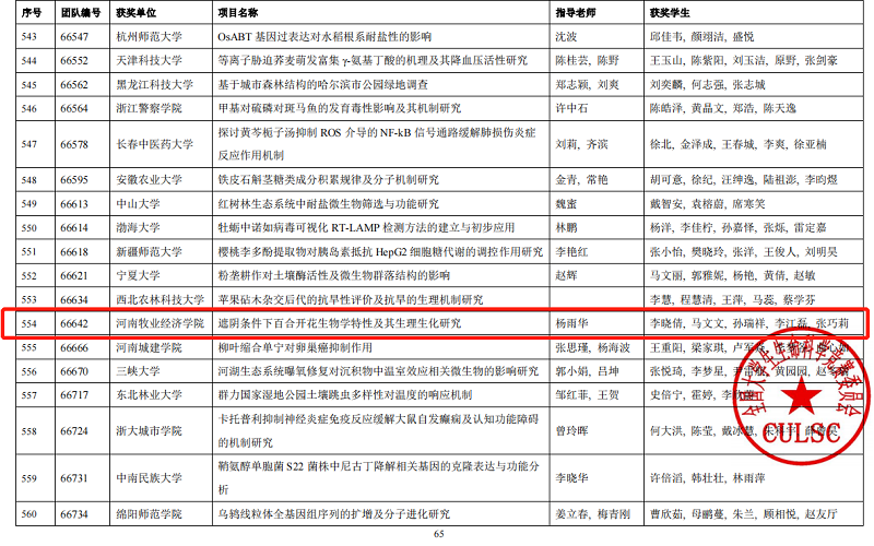 2022年8月24日,全国老员工生命科学竞赛(2022,科学探究类)决赛在安徽农业大学赛区、东北师范大学赛区、中山大学赛区和西华大学赛区采用线上答辩、专家线下评审的方式进行。其中由公司园林专业宗建伟老师指导,黄小迪、张创、李柽、岳辰、张静同学完成项目《丛枝菌根真菌应对干旱胁迫下文冠果的响应机制》和杨雨华老师指导,李晓倩、马文文、孙瑞祥、李江磊、张巧莉同学完成项目《遮阴条件下百合开花生物学特性及其生理生化研究》荣获全国三等奖。