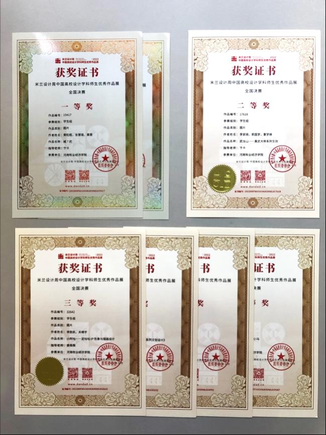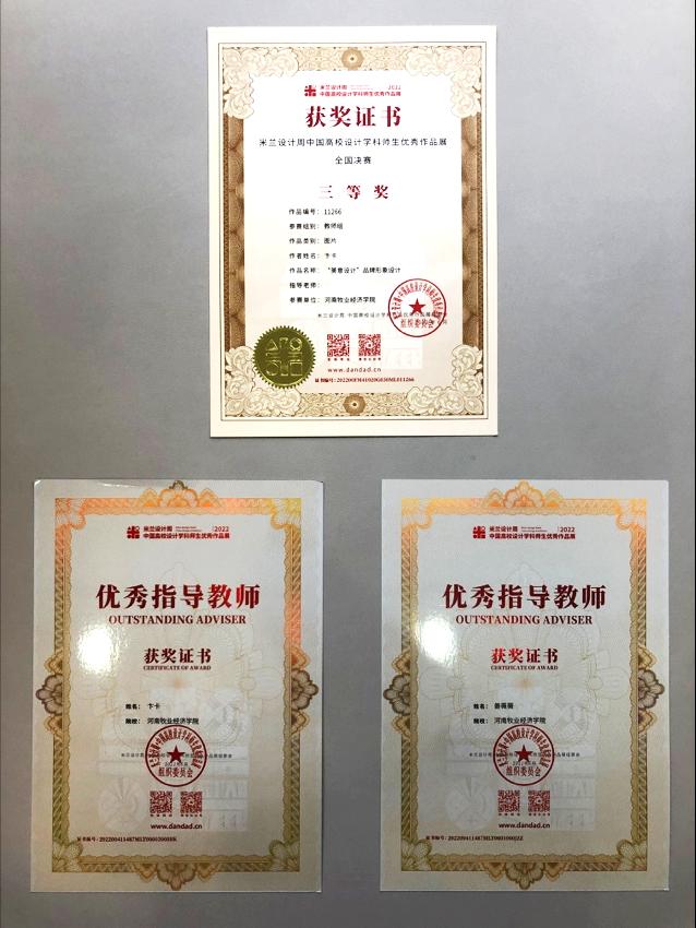 经过省赛的层层选拔,在近期落下帷幕的2022米兰设计周中国高校设计学科师生优秀作品展全国决赛中,视觉传达设计专业师生取得了骄人成绩,共获得教师组全国三等奖1项;员工组全国一等奖2项、二等奖1项、三等奖4项,两位老师获得优秀指导教师称号。