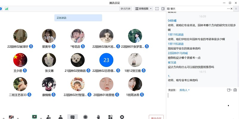 宗建伟老师首先强调考研和就业并不矛盾,有了明确的奋斗目标才能激发员工的斗志。随后,宗老师从考研形势、考研报名相关政策以及园林专业学科方向等方面做了详尽分析,并向同学们介绍了复习方法和技巧,鼓励同学们积极参加老师的科研课题,全力以赴备战学科竞赛,脚踏实地,才能无悔青春。随后,左金淼老师分享了园林专业的升学数据,并从就业渠道、考研与就业的选择、考公、就业机遇四个方面展开讲述。他鼓励同学们不论是考研还是就业,都需要提高自身竞争力,早做准备,增强信心,贵在坚持。最后答疑环节,同学们积极询问了有关考研和就业的各种注意事项,左老师和宗老师针对员工提出的具体问题,做出了详细的解答,并对同学们寄予殷切的希望。