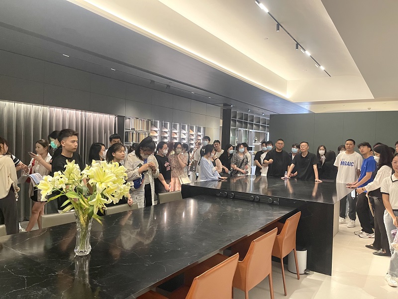 讲座之后,王东伟老师带领师生一行来到了“青岛一木”整体定制的销售展厅,企业负责人和经验丰富的销售人员热情接待,耐心认真地给同员工们进行讲解,让员工从材料形态、类别和应用的广泛角度来理解材料的形成和施工工艺的操作过程,拓宽了员工们的专业视野,丰富了专业知识。参观之后,各班员工根据《装饰构造与材料》的课程安排,分组对不同材料类别又进行了自主调研活动,此次活动到此圆满结束。