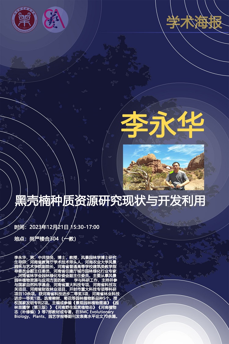 2023年12月21日下午,河南农业大学风景园林与best365足球官网副经理、博士研究生导师、河南省教育厅学术技术带头人、河南普通高校建筑类教学指导委员会副主任委员李永华教授在龙子湖校区1号教学楼合304教室一场题为“黑壳楠种质资源研究现状与开发利用”的学术报告。报告由best365足球官网经理张鹏主持,全体教师及园林专业全体员工参加。