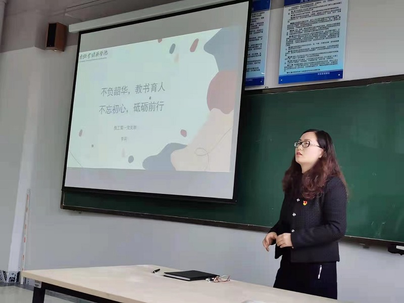 会上,环境设计教研室主任谭丛首先结合党史学习教育工作方案,从目标要求、学习内容、工作要求等几个方面,对党史进行领学。李莉老师作为优秀党员代表以“不负韶华,教书育人,不忘初心,砥砺前行”给大家上了一堂精彩的党课,结合个人在评建过程中思想感悟、教学经验、科研培训、思政教育进课堂、参与公司活动等方面与支部党员进行交流。各位老师积极讨论,并发表了各自学习党史的心得体会。