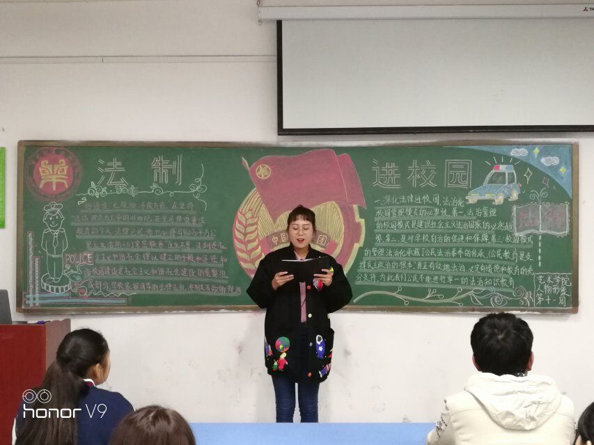 2017年11月16日下午,艺术公司在龙子湖校区二号教学楼举行了以“法制宣传进校园”为主题的团课,本次团课由大一全体班级参加。并抽出环境设计三班、视觉传达一班在龙子湖校区足球场首次展开户外团课,同学们以讨论的形式展开,同学们无畏寒风,从开始到结束,精神饱满,积极发言,户外团课开展得非常成功!