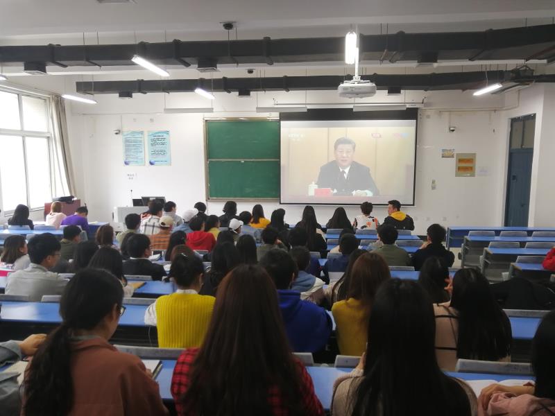 当天中午,公司员工干部和团员代表聚集在教学楼合404教室,第一时间集体观看学习了习近平总书记重要讲话精神。团总支负责人韩飞老师参加了此次学习活动。