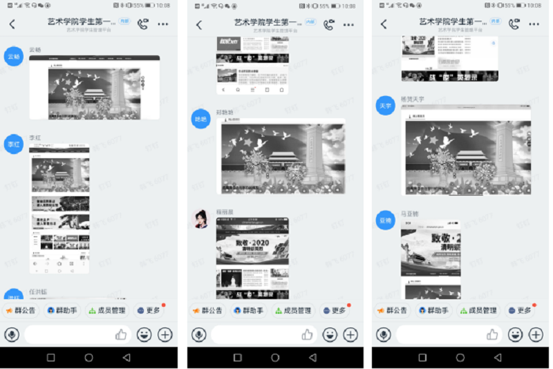活动开始之前,按照布置要求,全体党员分别登陆中华英烈网,完成网上祭扫,并纷纷在支部学习群内截图留言,表达了大家的哀悼之情。到10点钟的时候,大家集体默哀3分钟,随后韩飞老师说在刚刚过去的这个冬天,我们打了一场硬仗。新冠肺炎疫情是新中国成立以来在我国发生的传播速度最快、感染范围最广、防控难度最大的一次重大突发公共卫生事件。他引用专家张文宏的话说,我们用2到4个月的时间将这场“大流行”的疫情控制住了,这在整个传染病历史上是不曾有过的,在整个医学历史教科书上也是没有过的。这是一场人民的战“疫”,人民才是真正的英雄,每一个人都在努力战斗。有人永远留在了这个寒冬,只为了让更多人迎来春天。这当中有白衣战士,有公安干警,有社区工作者,谢谢他们,为守护生命奋战过。愿所有逝去的同胞安息,他们没有离去,只是换了个地方活在我们心里,以后的每一个春夏秋冬,家国永念。