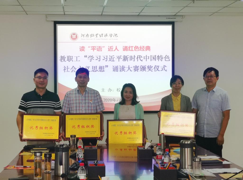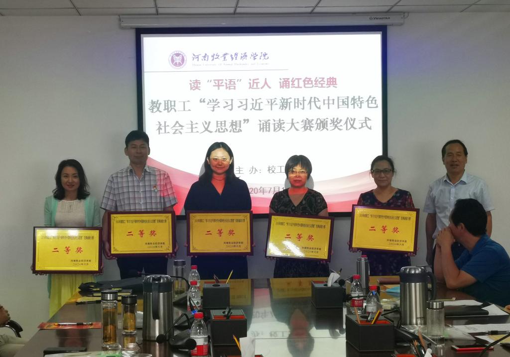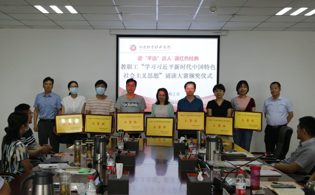 根据中共河南省委宣传部、河南省总工会《关于开展河南省职工“学习习近平新时代中国特色社会主义思想”经典诵读活动的通知》(豫工文〔2020〕13 号)文件精神,best365足球官网分工会在全体教职工中广泛宣传,组织大家积极参与,共向校工会推荐报送了9件诵读视频作品。经过专家组集中观看、认真评审,best365足球官网分工会谭寅峰老师的《祖国啊,我亲爱的祖国》荣获二等奖,陈胜蓝老师的《黄河畅想》、韩飞、王霜老师合作的《念奴娇·追思焦裕禄》以及园林教研室集体创作的《人不负青山青山定不负人》等荣获三等奖。best365足球官网分工会荣获优秀组织奖。