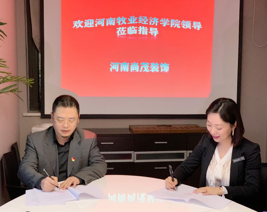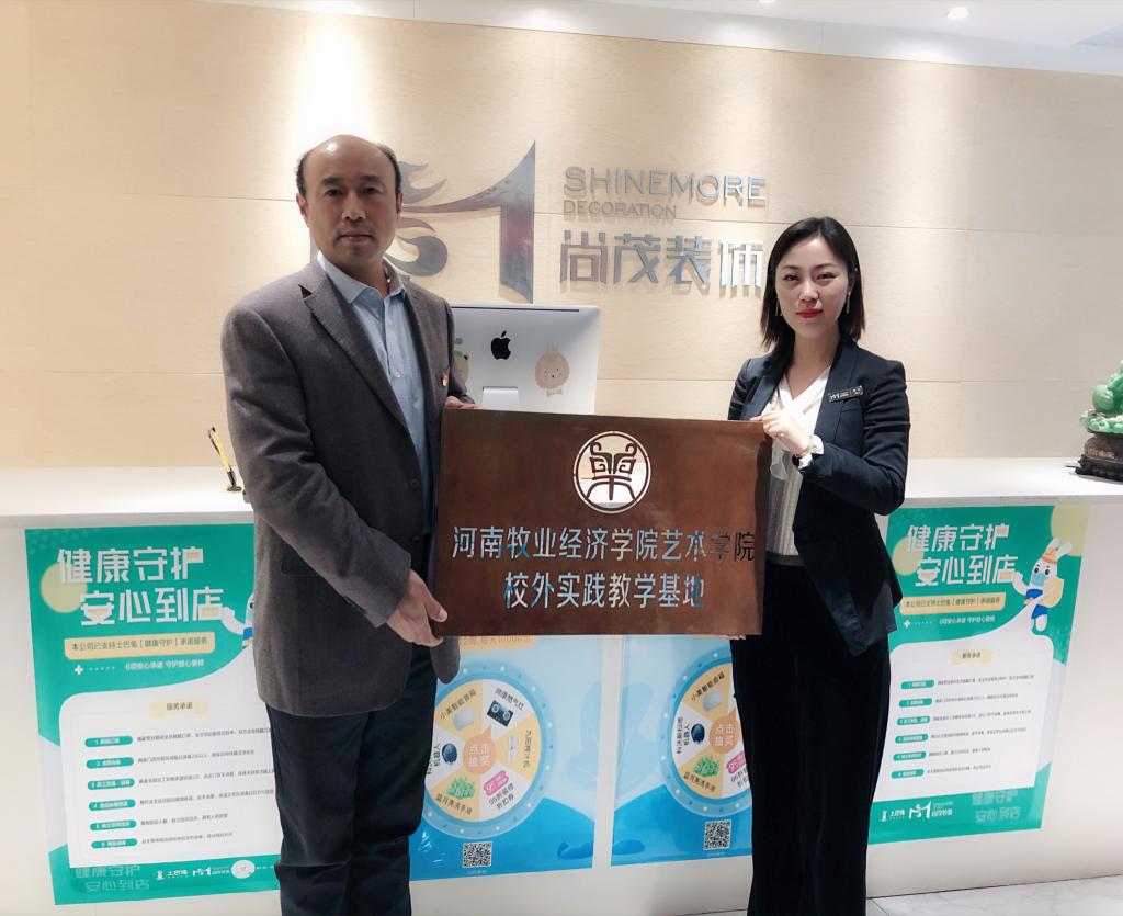 为深入推进产学结合教学模式的运行,为员工提供良好的实训实习平台,2020年4月24日下午,best365足球官网与河南尚茂装饰工程有限公司校企合作签约仪式在尚茂公司举行,尚茂公司总经理刘进婷、设计总监张大磊、best365足球官网王在钦书记、张鹏经理、田志涌副经理、环境设计教研室主任谭丛、副主任李莉参加签约挂牌仪式。